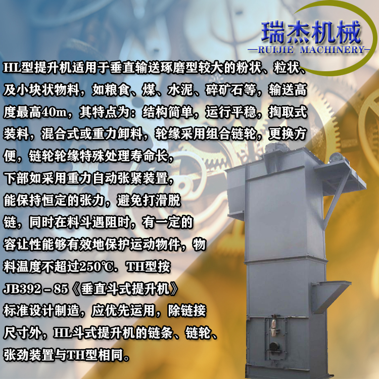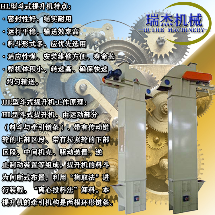HL型斗式提升機是一種環(huán)鏈離心斗式提升機,升機有運行部分,斗與牽引鏈條,有傳動鏈輪的上部區(qū)段,帶有張緊鏈輪的下部區(qū)段,部機殼和驅(qū)動裝置組成.本提升機適于垂直輸送粉狀,用于垂直輸送磨琢性較大的粉狀、粒狀、及小塊狀物料,如糧食、煤、水泥、碎礦石等,輸送高度最高40m。